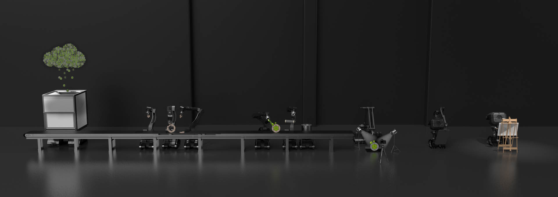 In diesem Schritt wird ihr Produkt in eine Szenerie integriert oder vor einem passenden Hintergrund ausgeleuchtet. Hierfür wird entweder eine komplette Szene mit weiteren 3D-Modellen aufgebaut oder eine Art virtuelles Fotostudio mit Hohlkehle. Als nächstes werden die virtuellen Kameras positioniert.