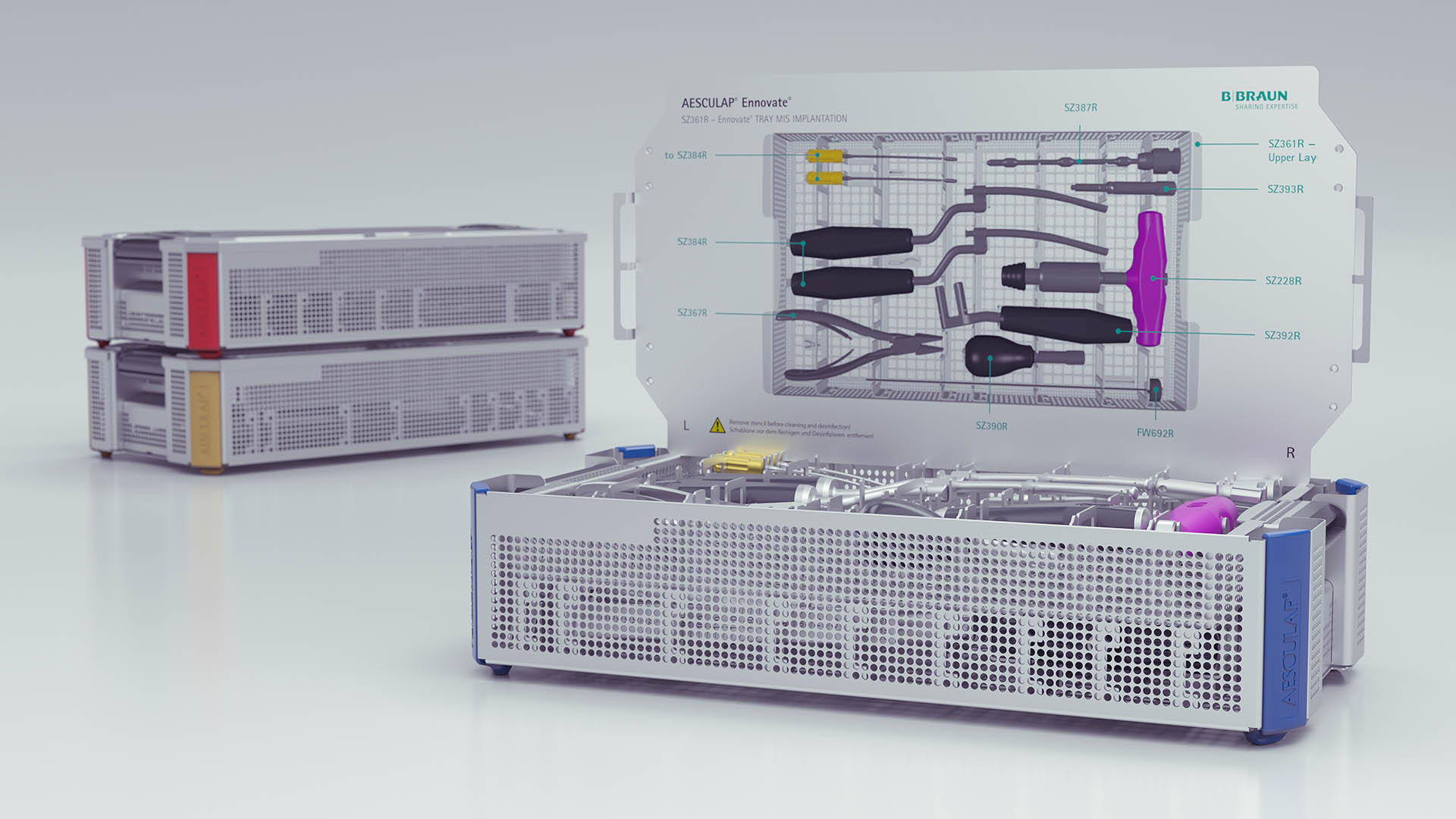 Auf Basis von CAD-Daten haben wir fotorealistische 3D Renderings für Aesculap’s Produktreihe Ennovate erstellt. Diese wurden für Bedienungsanleitungen / Manual’s, Broschüren und Kataloge eingesetzt.