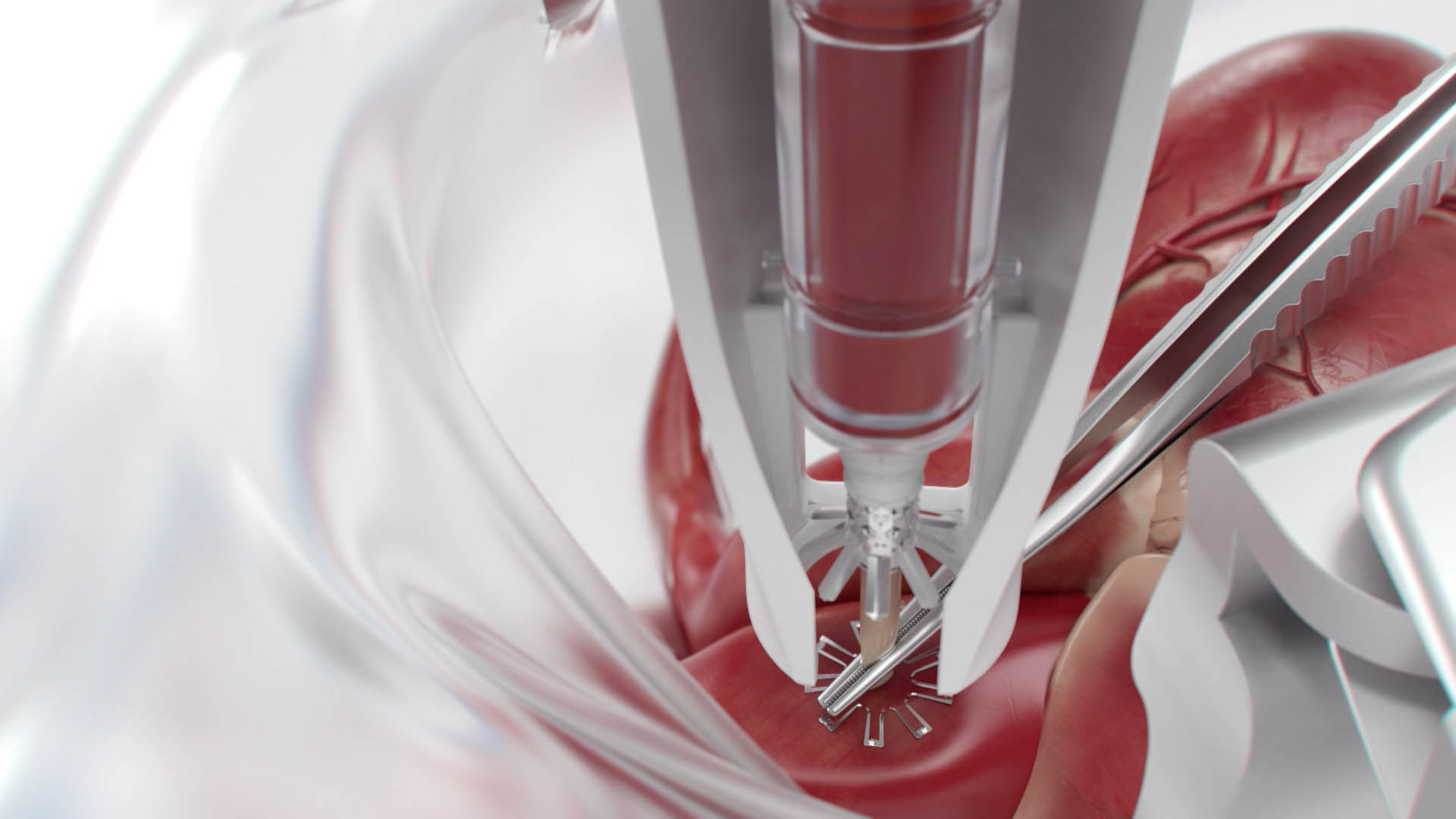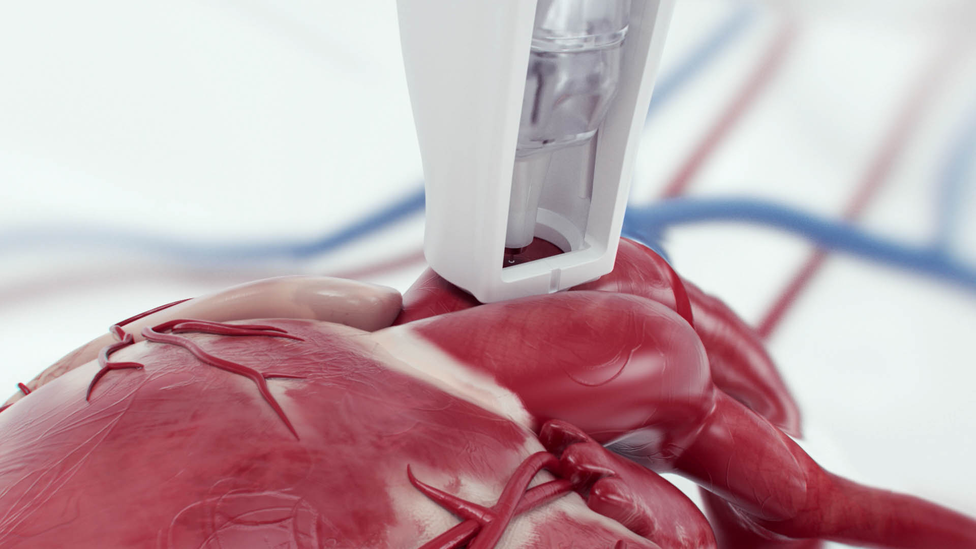 Da dieser in der Herzchirurgie am pumpenden Herzen eingesetzt wird, war klar, dass auch wir den Vorgang möglichst organisch darstellen sollten.